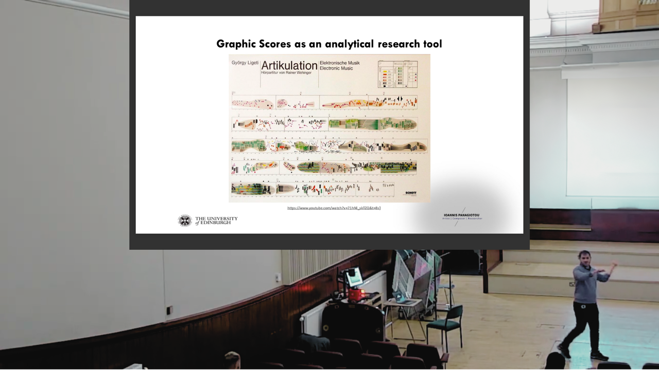The symposium Addressed the contemporary challenges in film scoring and aimed to foster a deeper understanding of GMN's role in communicating complex musical ideas within visual narratives. It strived to bridge the gap between traditional film scoring and modern sound design by encouraging participants to investigate expressive timbral techniques, use instrumentation as a narrative device, explore collaborative sound design, and integrate cutting-edge technology into GMN. The symposium aspired to cultivate a community dedicated to pushing the boundaries of music for film, embracing the potential of Graphic Music Notation as a powerful tool for shaping the future of cinematic soundscapes.